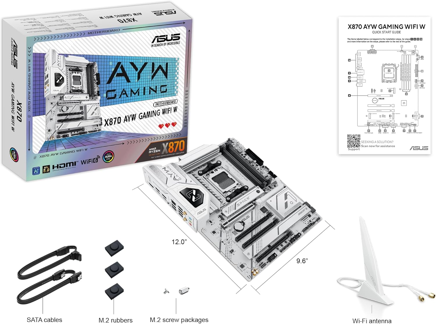 ASUS X870 AYW GAMING WIFI W AMD X870 AM5 ATX motherboard, 12+2+1 80A DrMOS power