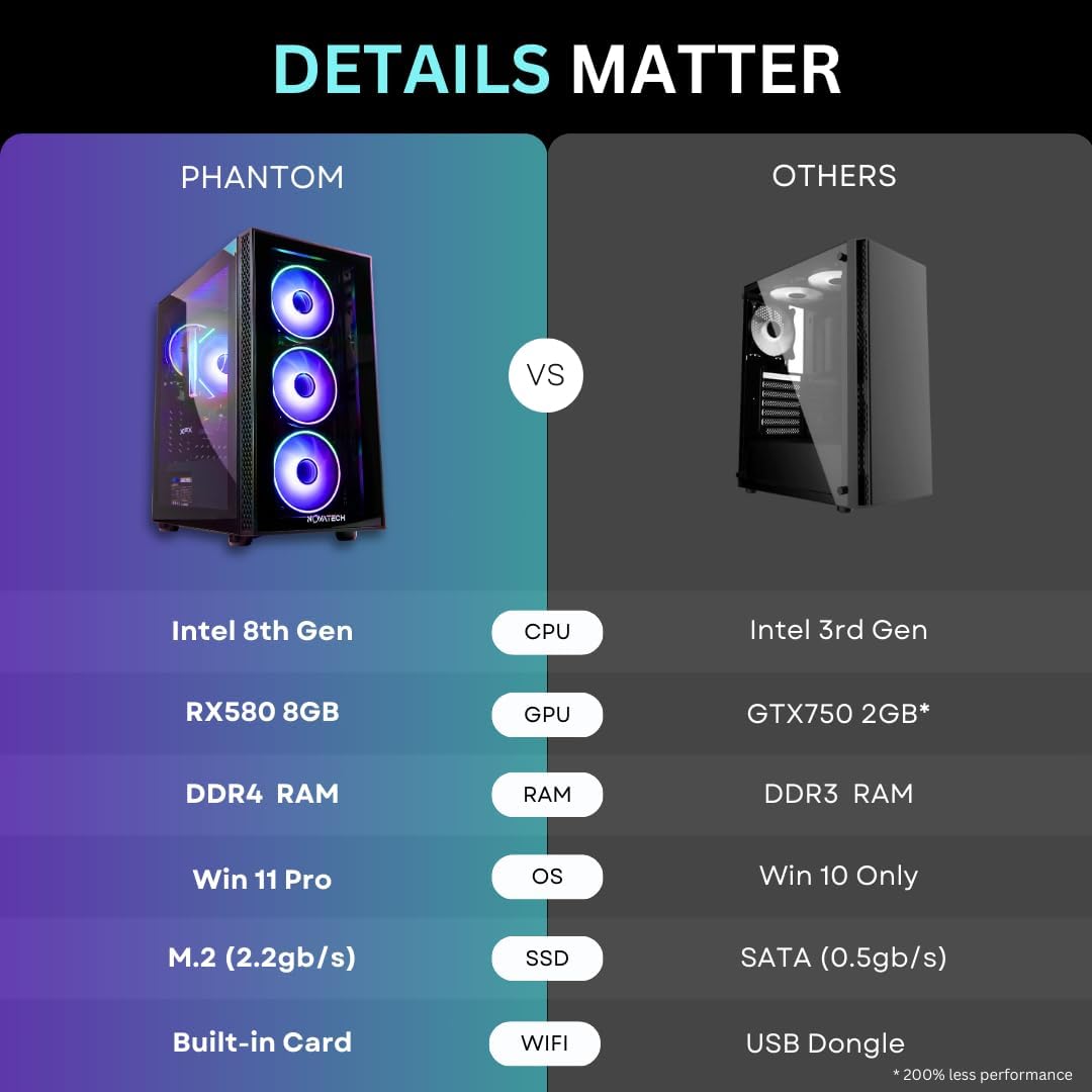 NOVATECH Phantom - Prebuilt Gaming PC Desktop Computer - RX580 8GB - Core i7 Xeon 3.5GHz - 16GB RAM - 512GB M.2 SSD WiFi/BT, Win 11 Pro - Gaming Computer Tower - Pre Built PC Gaming - 1 Year Warranty