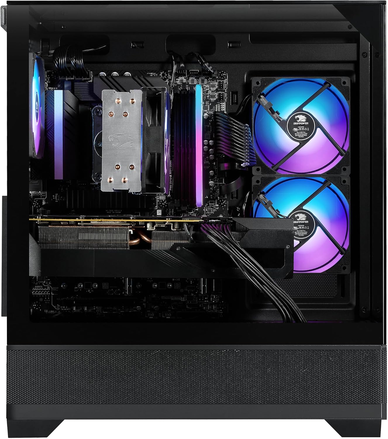 Level up your setup with the iBUYPOWER SCA5N5501, the perfect budget gaming PC build for someone looking to upgrade their desktop computer system for video games, editing, AI, and streaming. This prebuilt iBUYPOWER Gaming PC utilizes professionally vetted components to create a high-performing desktop machine. Take gaming and content creation to a new level on an AMD Ryzen 5 8400F processor paired with an NVIDIA GeForce RTX 5050 8GB graphics card. Enjoy fast load times and ample storage space on a 1TB NVMe solid-state drive. Multitask like no other thanks to 16GB DDR5 RGB RAM. The PC is even Wi-Fi Ready and comes with Windows 11 Home installed so you can plug in and game right away. Discover the gamer experience and upgrade your RGB setup thanks to the included iBUYPOWER gaming keyboard and mouse. To keep your computer cool and quiet at full power, the SCA5N5501 boasts the new Tower Air Cooler, a performance air fan CPU cooler, and RGB fans in a premium iBUYPOWER Scale case.